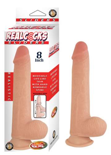 REAL COCKS SLIDERS 8" REALISTIC, DILDO CON VERTEBRE Y COPA DE SUCCION EN LA BASE.