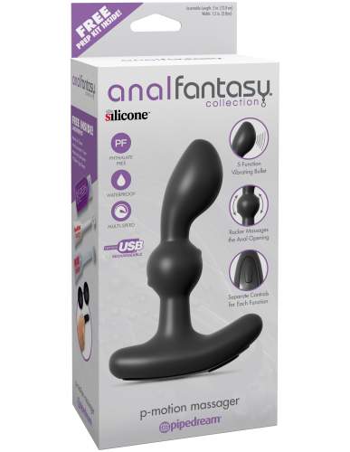 El masajeador de próstata Anal Fantasy P-Motion de presenta un diseño ergonómico e innovador. Su extremo curvado y flexible estimula la próstata con precisión, mientras que su sección de bola, equipada con un sistema de perlas en movimiento, estimula el esfínter como un dedo.