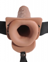 FETISH FANTASY SERIES 7 1/2" HOLLOW SQUIRTING STRAP-ON WITH BALLS, FUNDA EXTENSION CON EFECTO EYACULACION, ARNES AJUSTABLE.