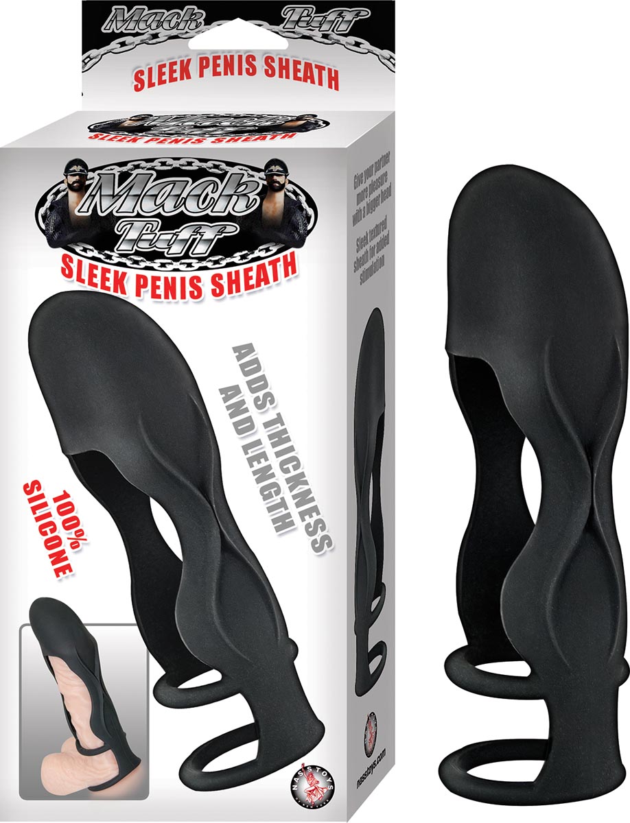 MACK TUFF SLEEK PENIS SHEATH, FUNDA DE SILICONA CON SUJETADOR DE TESTICULOS, EXTENSION.