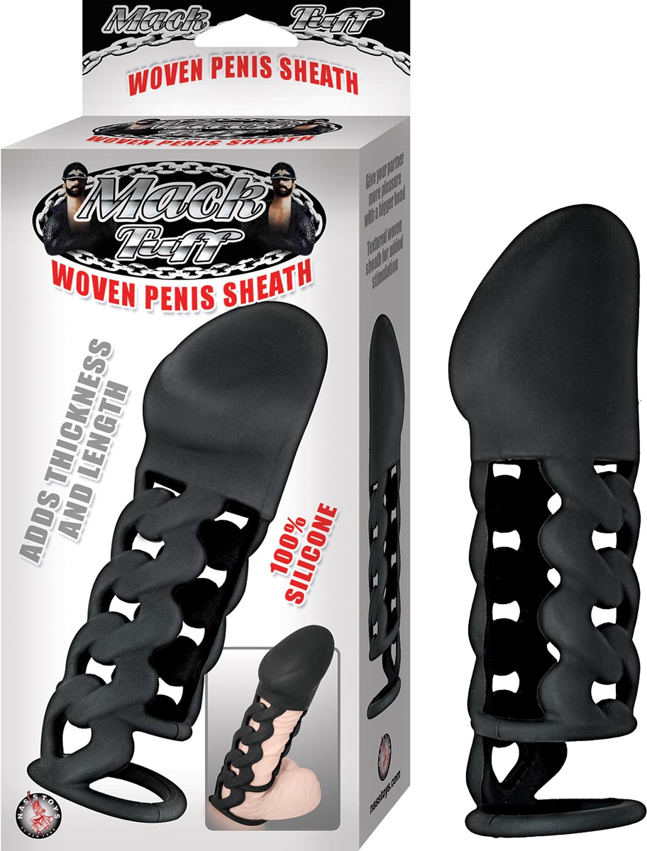 MACK TUFF WOVEN PENIS SHEATH, FUNDA DE SILICONA CON SUJETADOR DE TESTICULOS, EXTENSION.