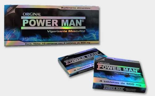 ORIGINAL POWER MAN VIGORIZANTE MASCULINO PRESENTACION 4 TABLETAS DE 500mg. MODO DE USO UNA TABLETA UNA HORA ANTES DE LA ACTIVIDAD VITAL, RECOMENDADO POR ESPECIALISTAS